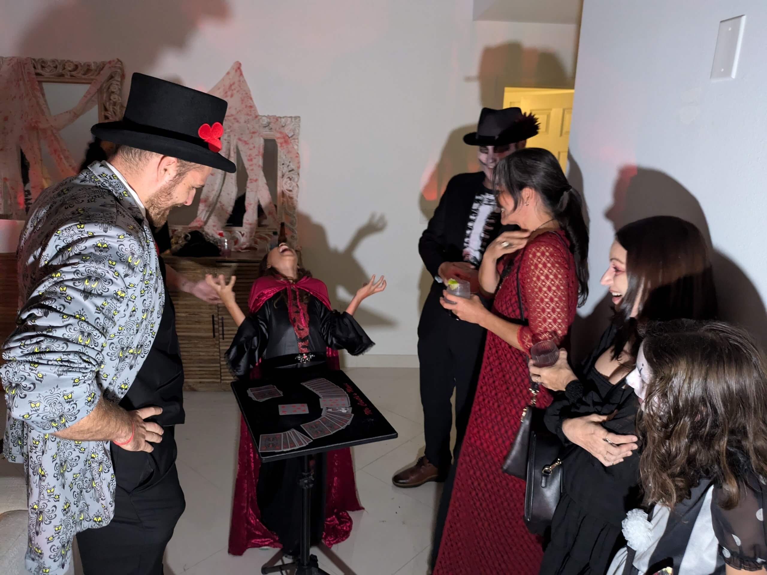 Close-up magic around the room plus a short feature set for the guest of honor. Works great in homes, clubhouses, or private rooms at restaurants.